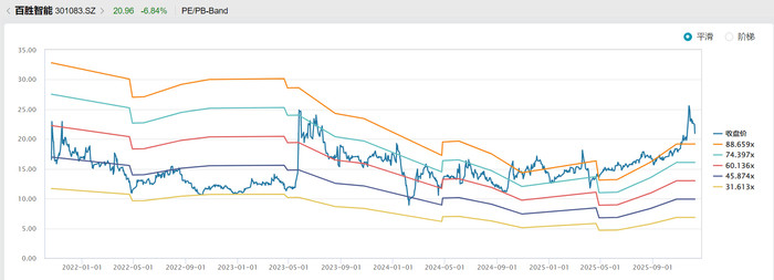 最后,百胜智能自身业绩基本面也难以支撑估值提升。目前,公司市盈率(TTM)约为92.13倍,处于历史相对高位,而同期A股电子设备行业平均市盈率为41.42倍,相较行业均值公司估值已处于相对高位。