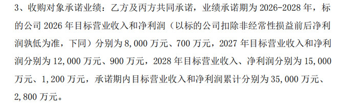 根据收购协议,百胜智能此次收购的中科深谷承诺2026-2028年累计实现营收3.5亿元、净利润2800万元,其中2026年净利润700万元,对应51%股权贡献的净利润约357万元,占百胜智能前三季度净利润的比重不足12%,难以支撑股价大幅上涨。